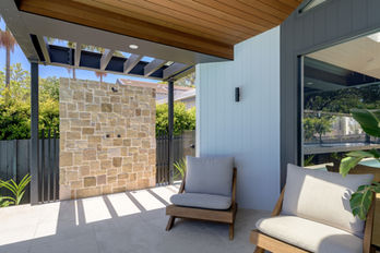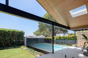 Flowing seamlessly from the interior, the expansive terrace is purpose-built for entertaining. Timber-lined raked ceilings create a cohesive transition to the outdoors, while the terrace overlooks an inviting in-ground concrete pool—perfect for hosting friends and family or simply relaxing in style.